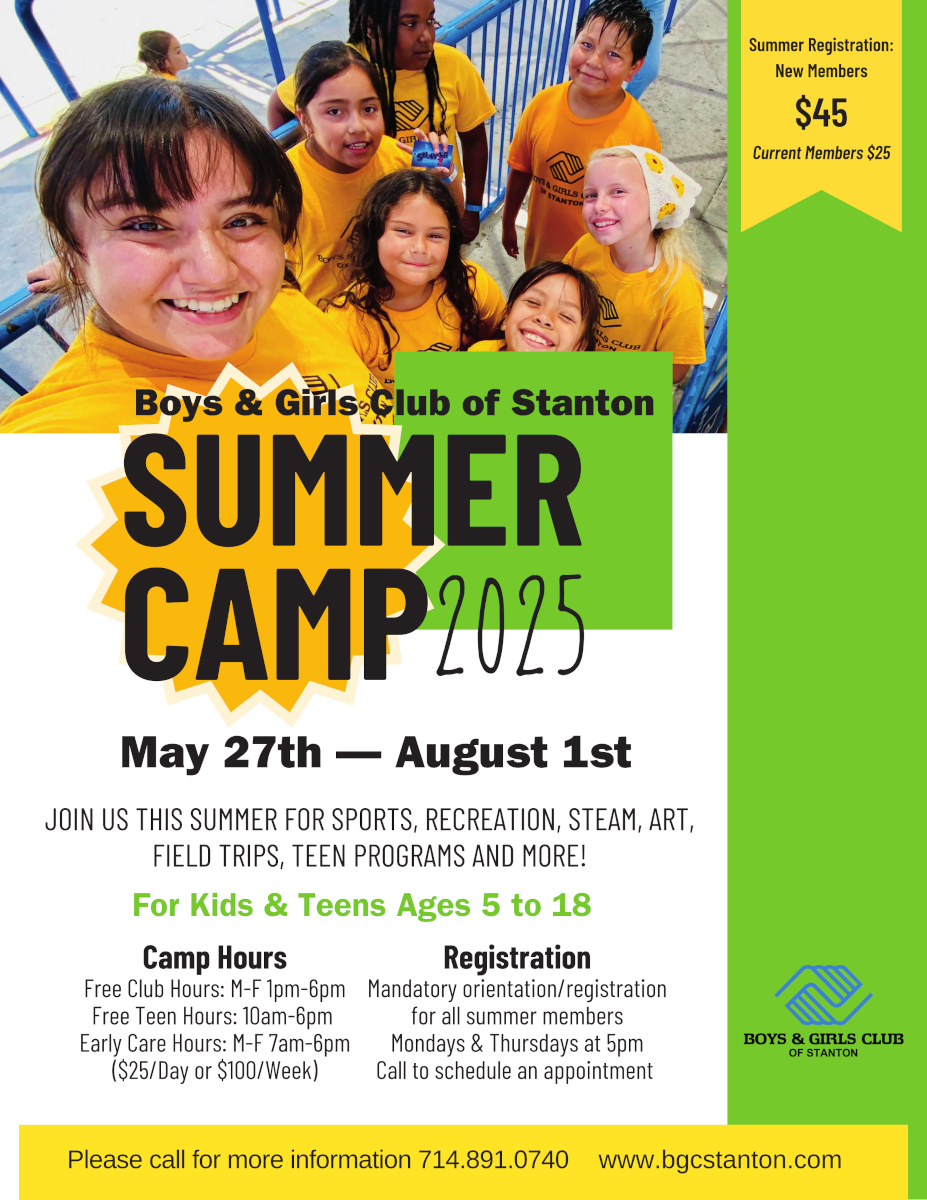 The Boys & Girls Club of Stanton offers great volunteer opportunities and is an equal opportunity employer. The Club has many different departments that need volunteers, from our Learning center (Help with homework), the Arts Department (Help kids make arts and crafts), to Athletics (Helping kids learn sports). Please call the Club for more information 714.891.0740