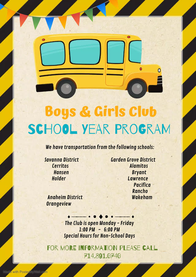 The Boys & Girls Club of Stanton provides after school van transportation from a select number of local schools to the Club. Please call the Club and ask for Linda, our Office Manager, for more information (714) 891-0740.